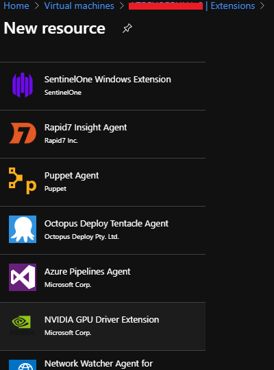 In the search bar, type NVIDIA. Select NVIDIA GPU Driver Extension.